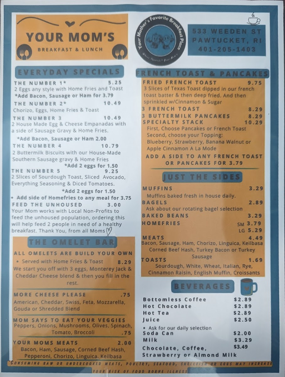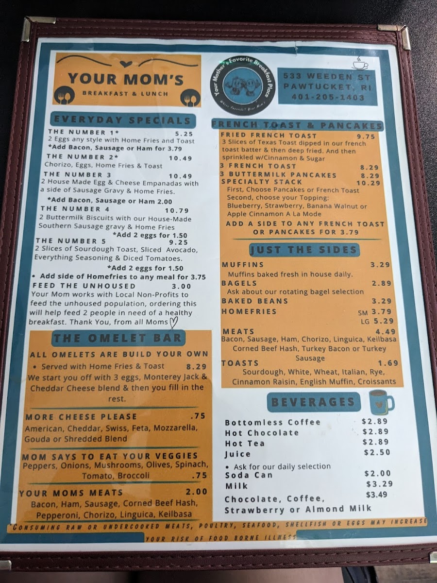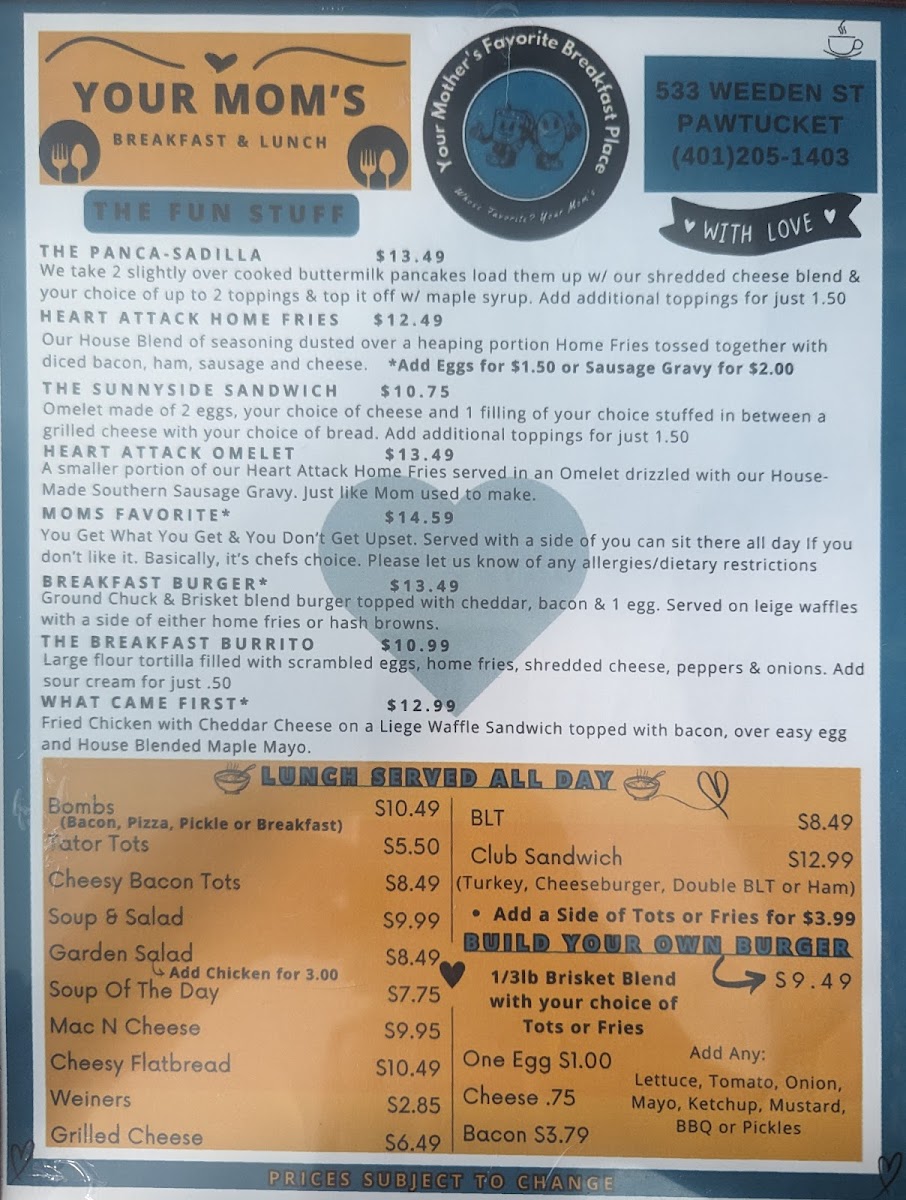 Welcome to Your Mother’s Favorite Breakfast Place, a haven for breakfast lovers located at 29 Winter St, Manville, RI. This cozy eatery quickly captures the heart with its inviting atmosphere and charming staff, reminiscent of a family home where everyone feels welcome.